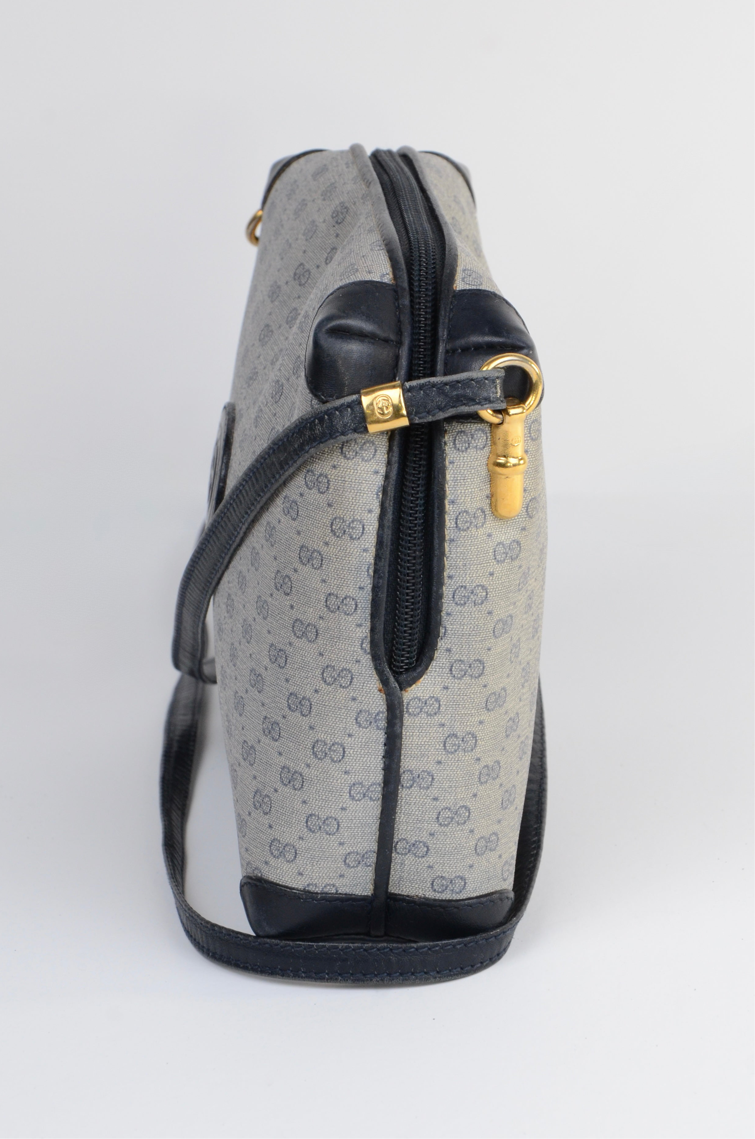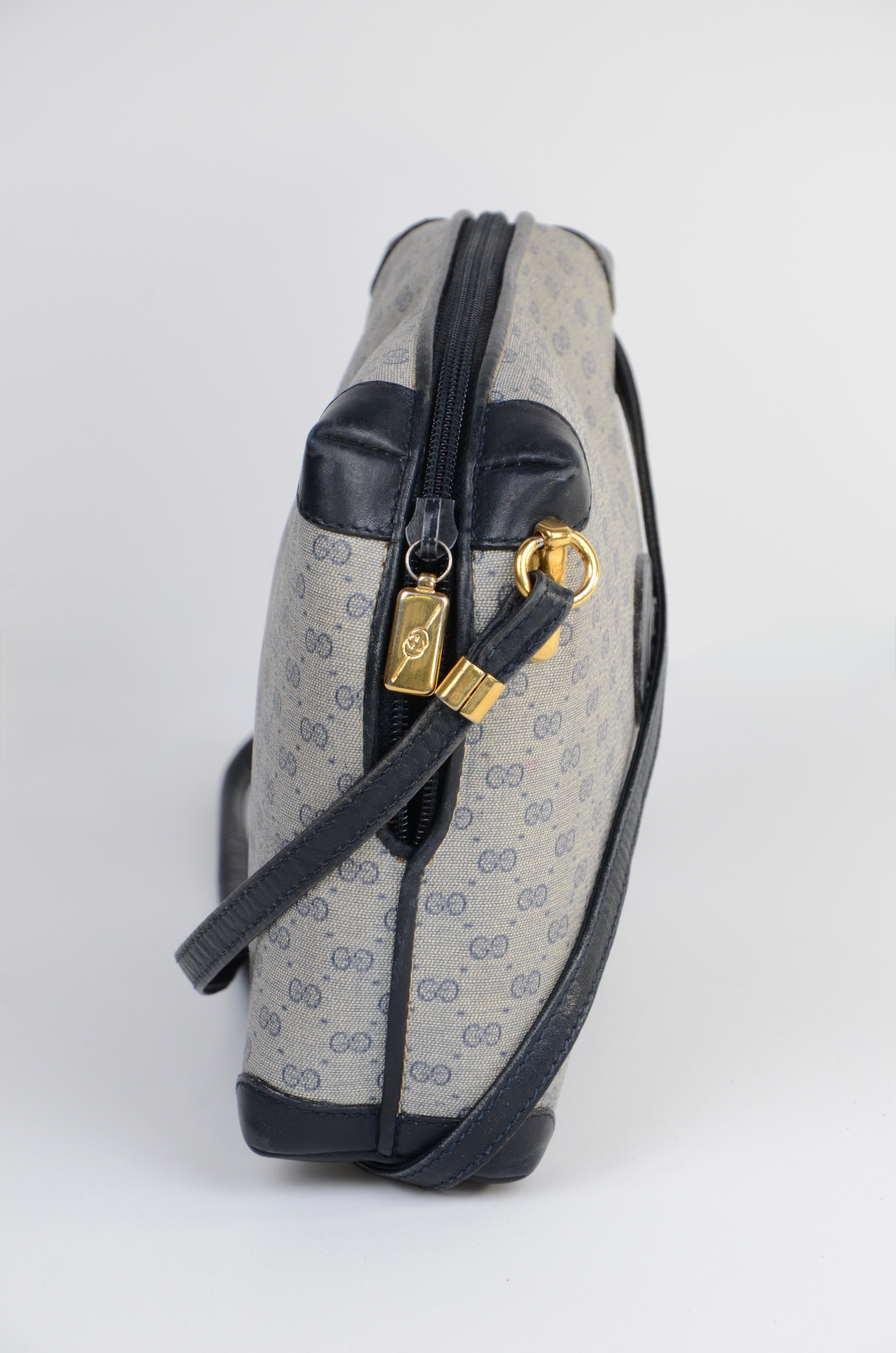 Description: This vintage Gucci crossbody is crafted from signature GG monogram canvas with smooth marine blue leather and gold-tone hardware. With its structured square shape, zip closure, and long fixed leather strap, this piece combines everyday practicality with timeless Italian elegance. Compact yet roomy enough for daily essentials, it easily fits a phone, wallet, keys and small accessories. A versatile vintage classic that elevates any outfit.