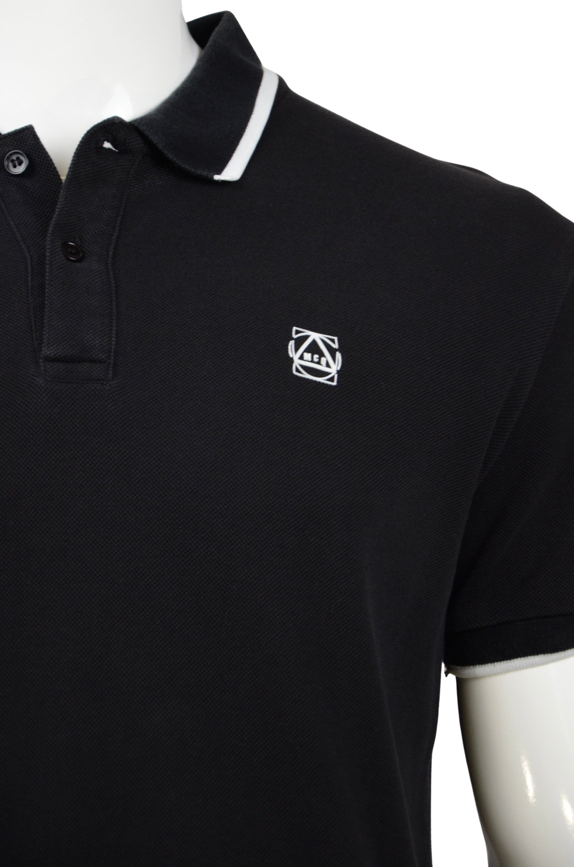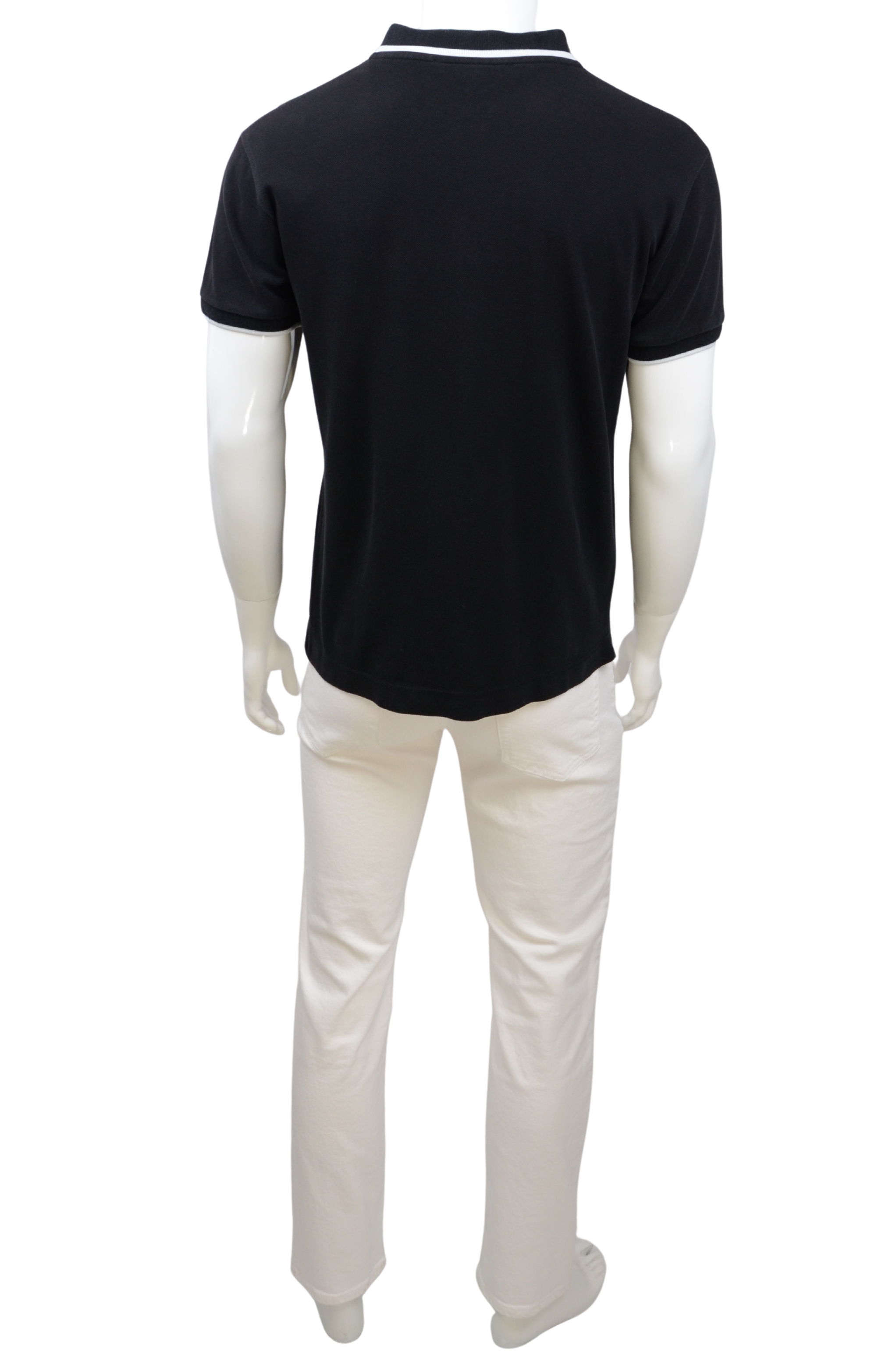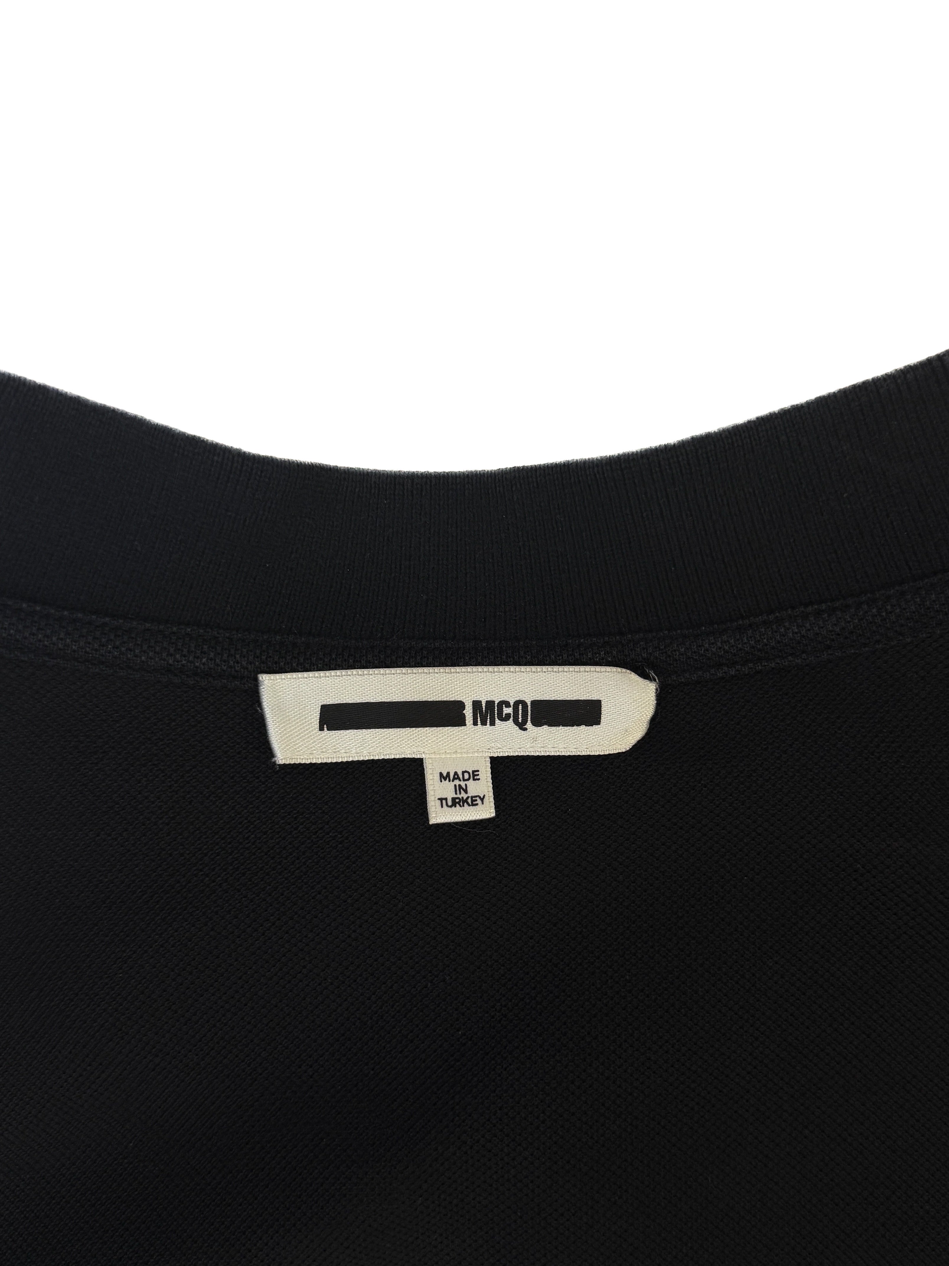 Description: A sleek and modern take on the classic polo, this black MCQ polo shirt is crafted from a soft cotton blend with subtle stretch for comfort. Featuring contrast white tipping on the collar and sleeves, and finished with the embroidered MCQ logo on the chest, this piece blends casual sophistication with contemporary edge. Perfect for both everyday wear and smart-casual styling.