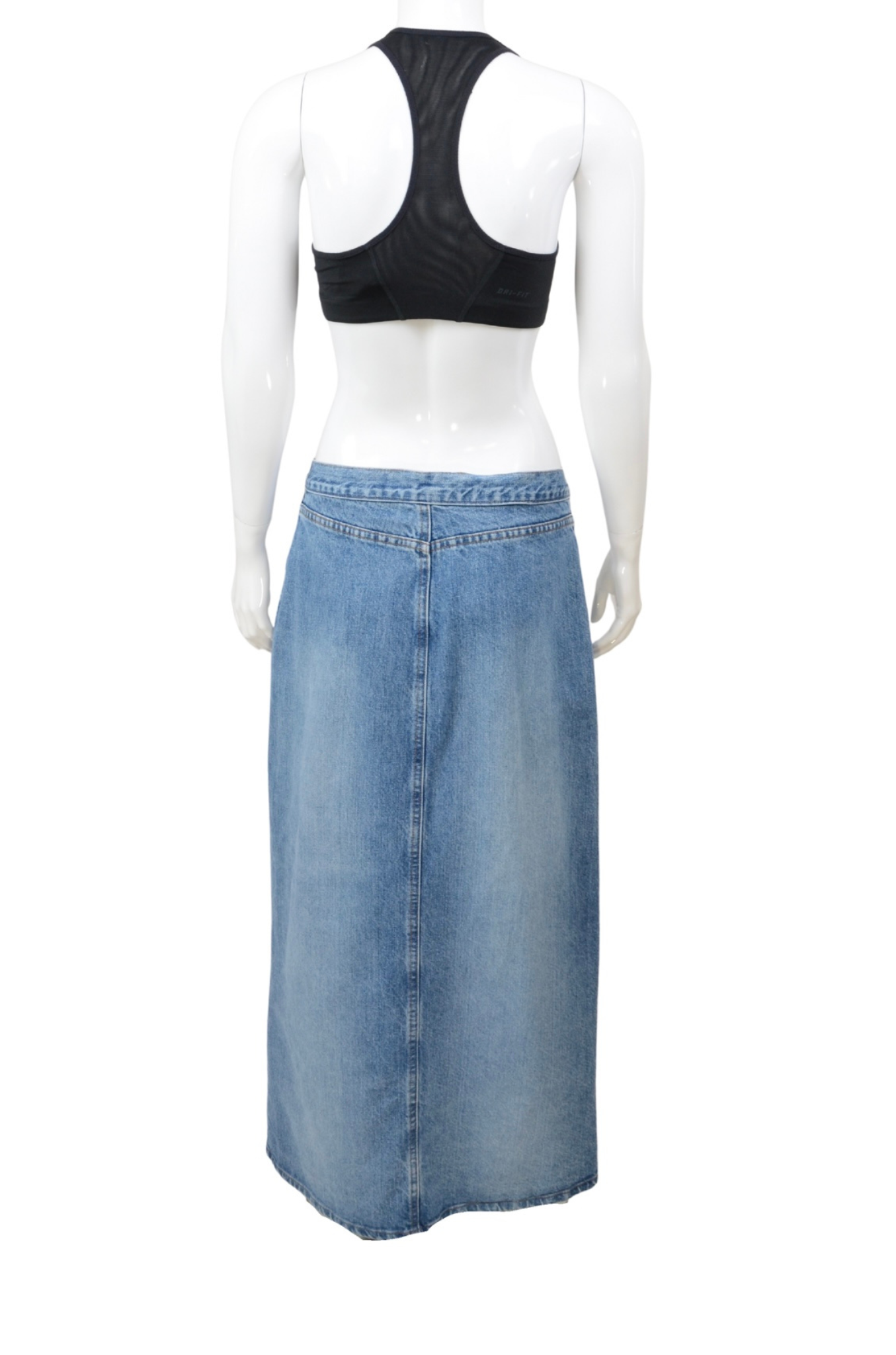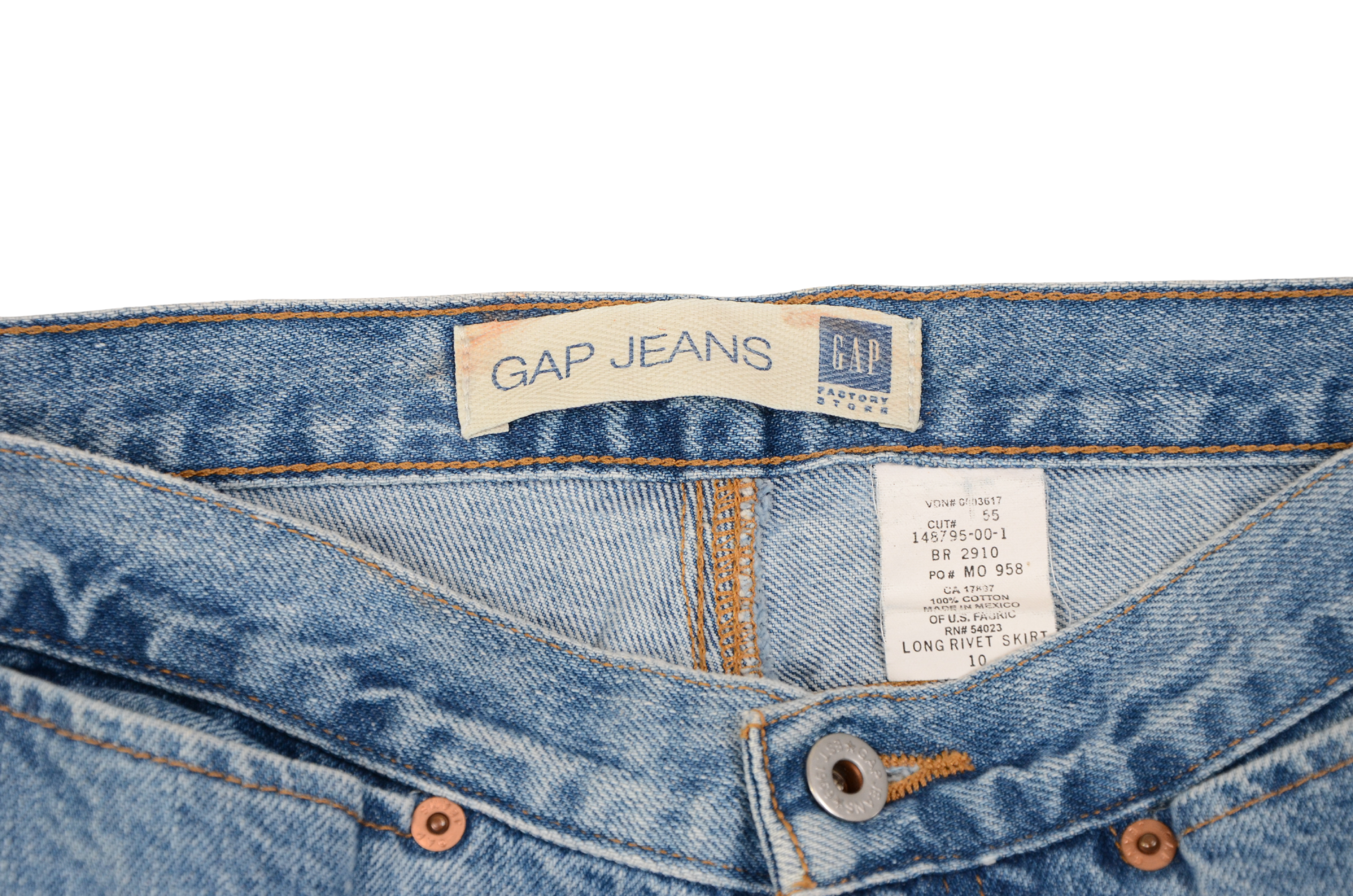 Description: this vintage-style denim maxi skirt by GAP features a classic medium wash and a front slit for easy movement. Timeless and versatile, it pairs perfectly with everything from tank tops to oversized knits. A wardrobe staple with that laid-back 90s/Y2K feel.