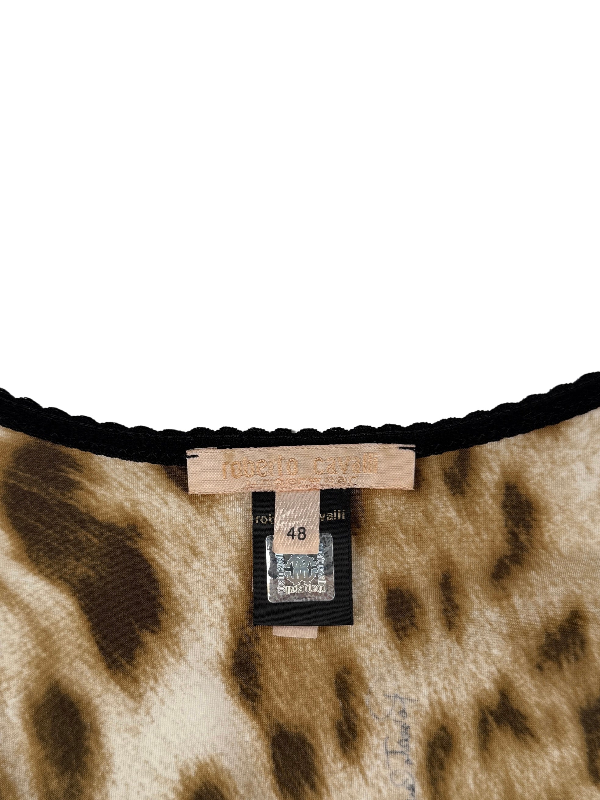 Roberto Cavalli Leopard Print Crystal Logo Top