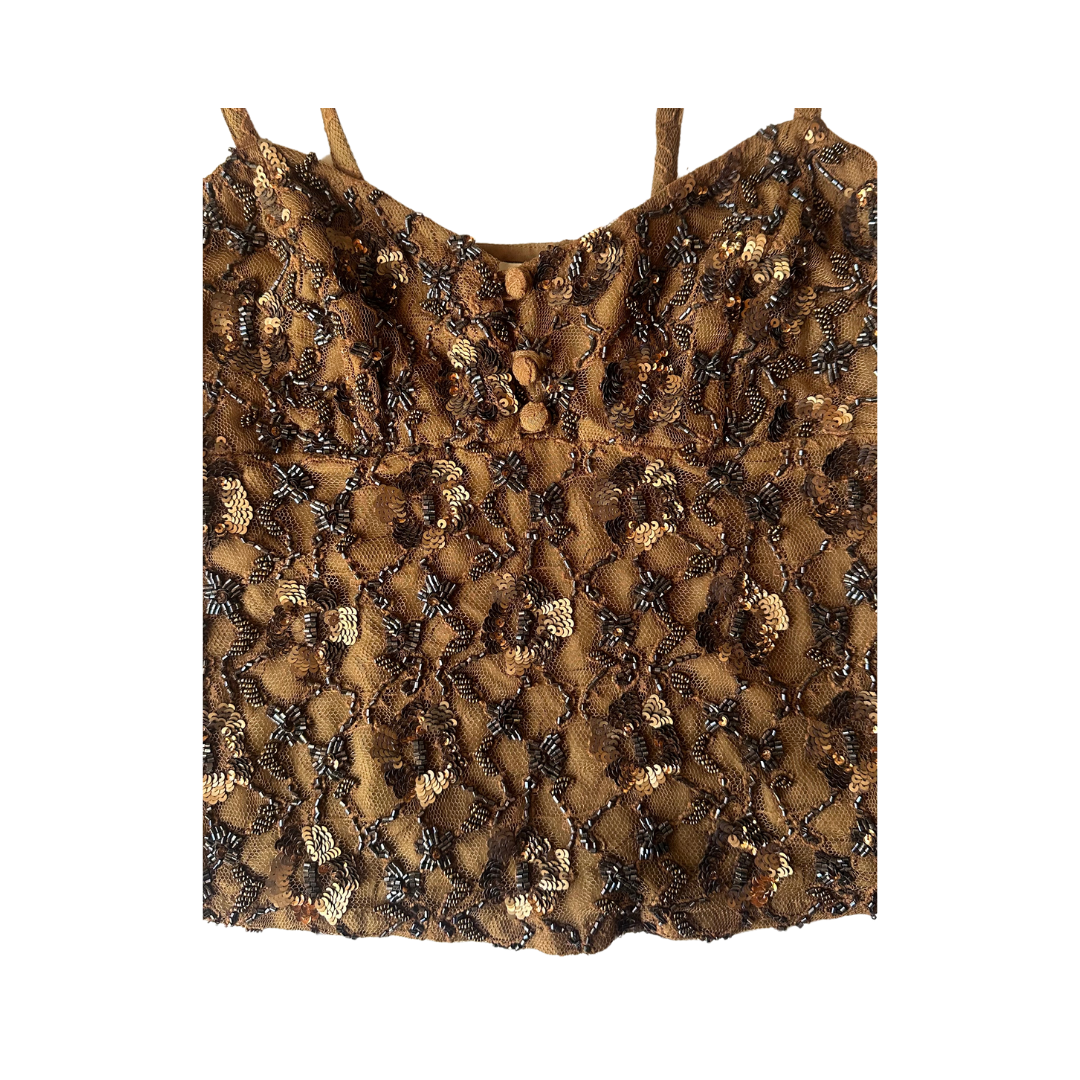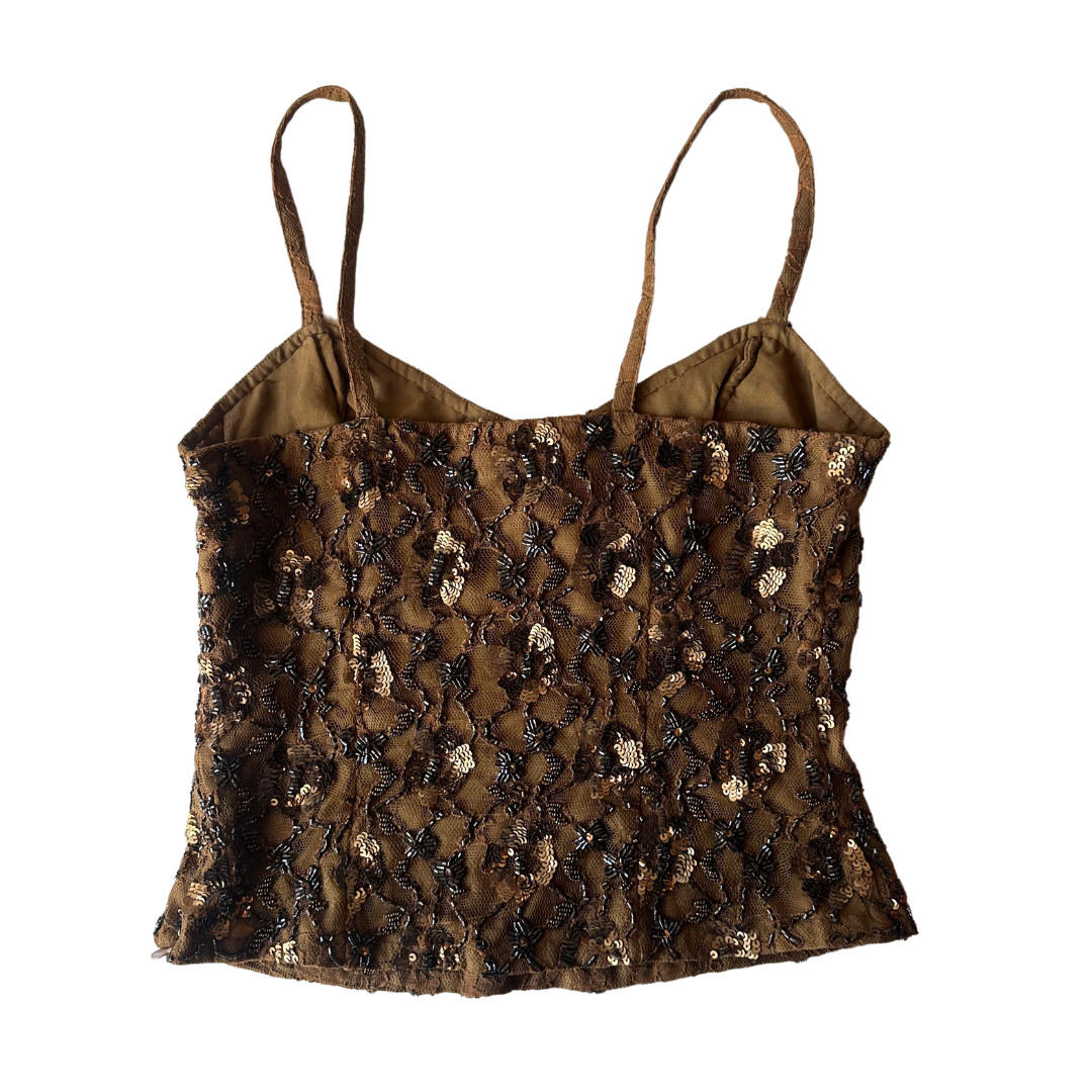 Description: vintage brown Y2K top. Top closes with invisible side zipper.