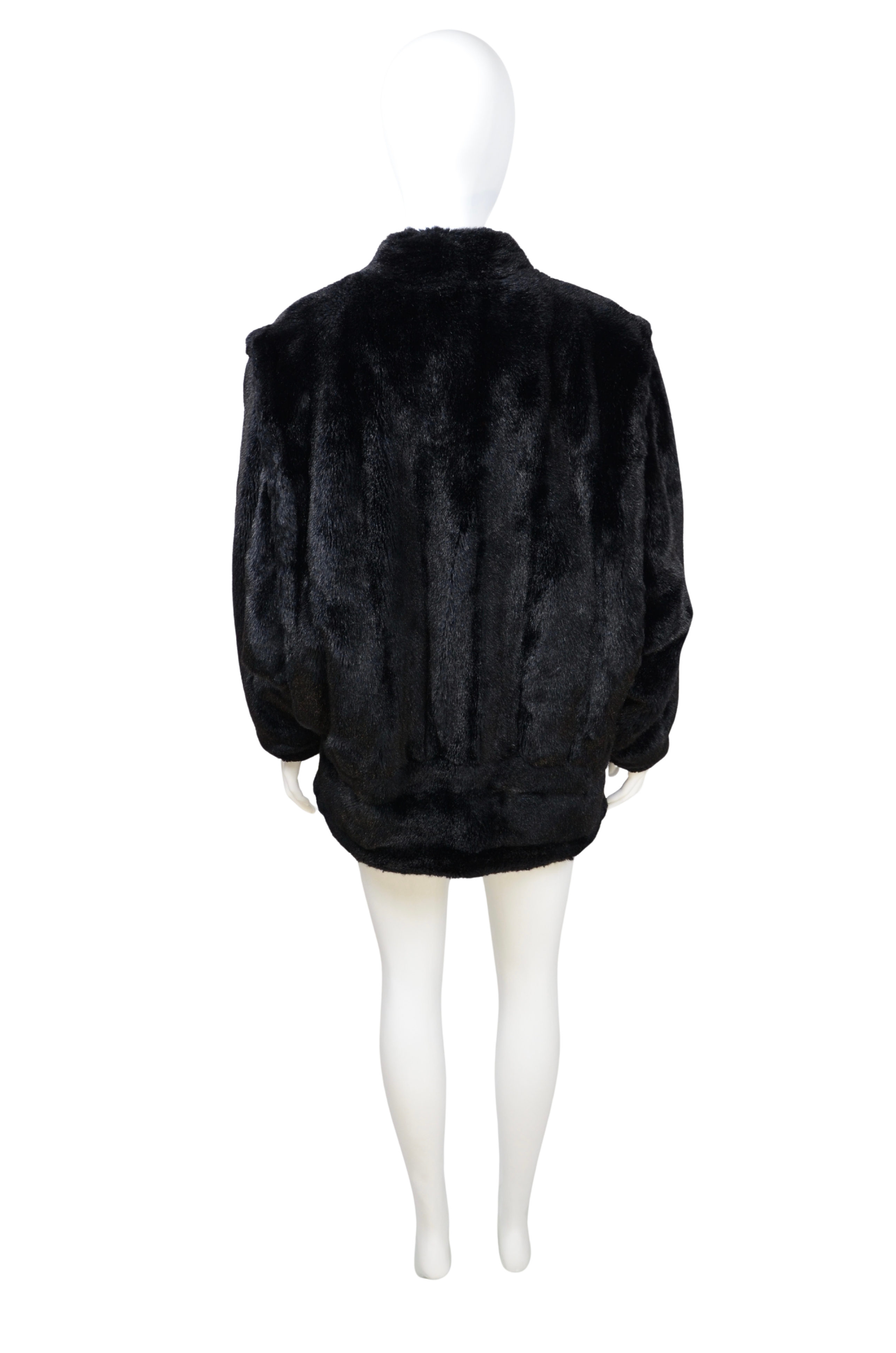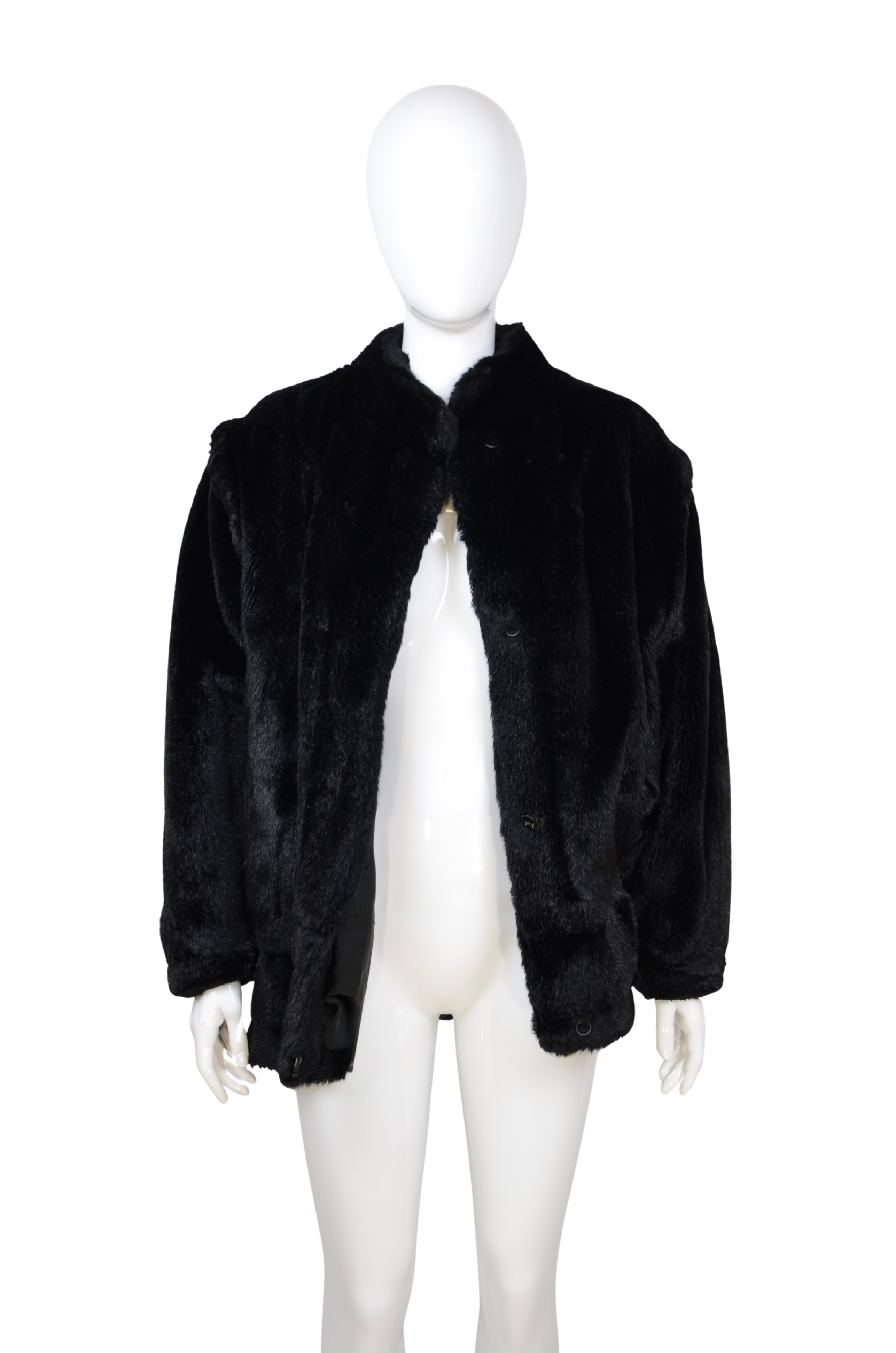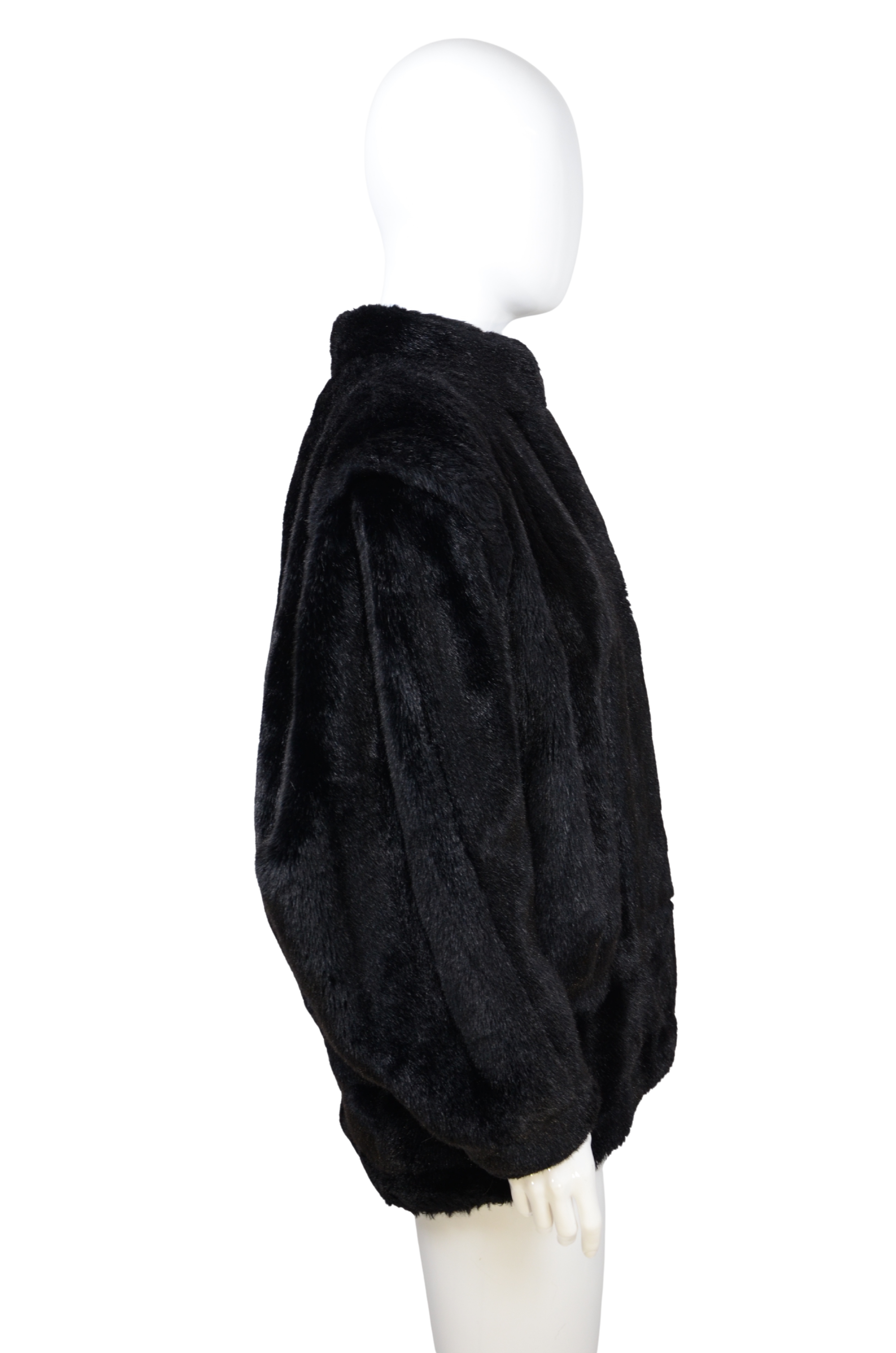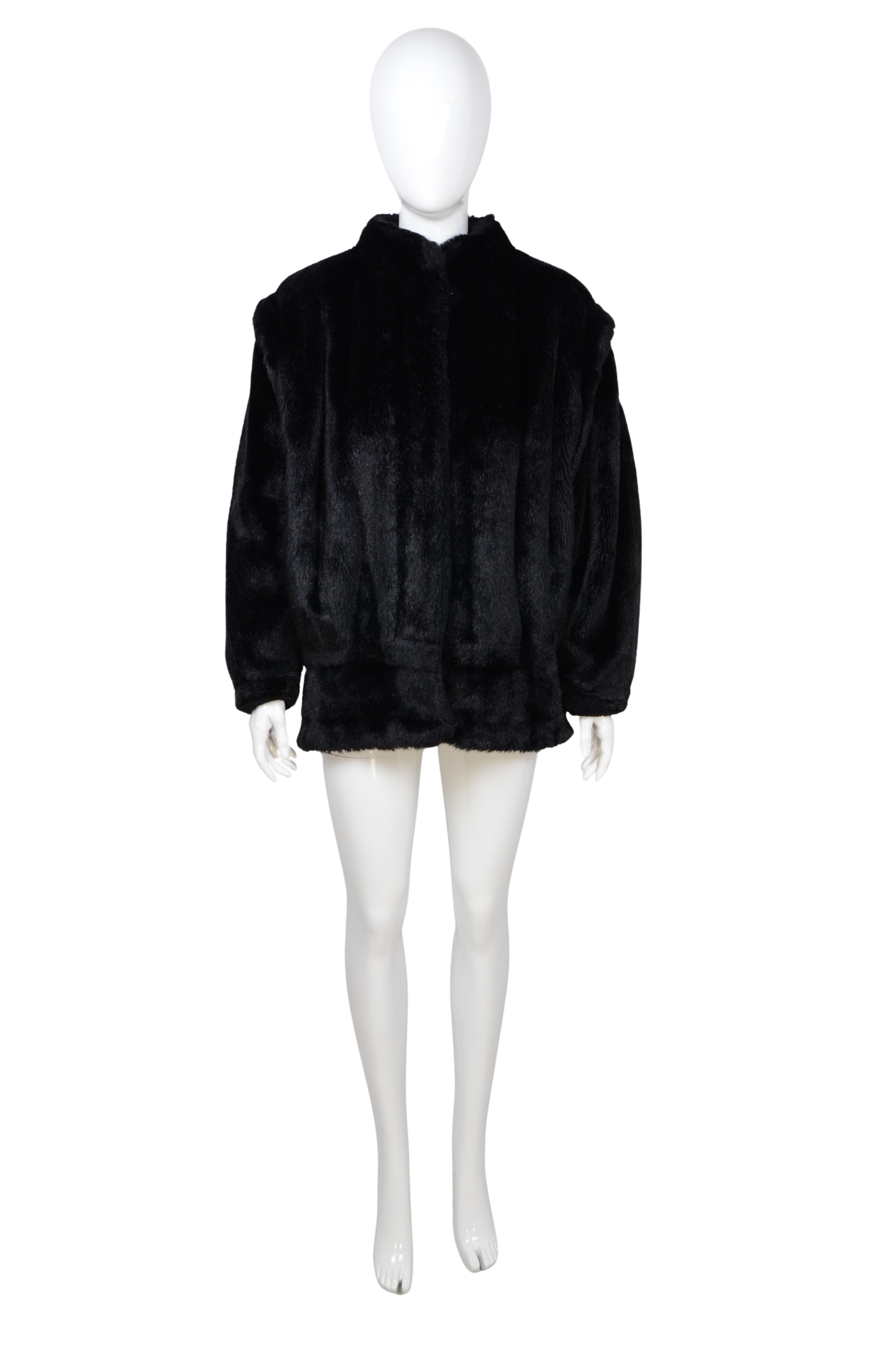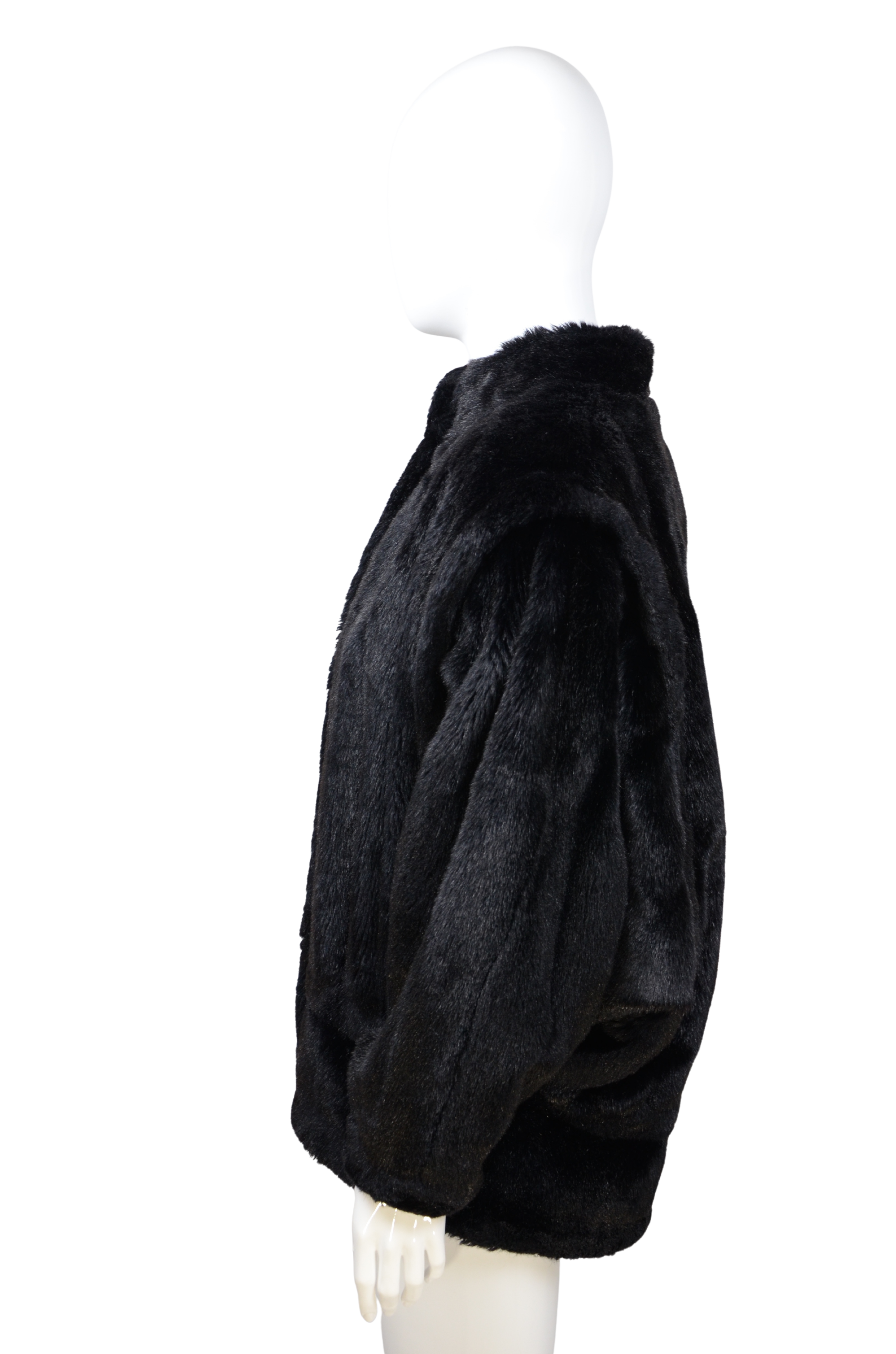 Description: this timeless black faux fur coat combines understated elegance with everyday versatility. Crafted in a soft and plush texture, it offers the luxurious look of fur while remaining lightweight and comfortable. The clean silhouette and classic design make it easy to style for both casual and evening occasions. A chic, animal-friendly wardrobe staple for the modern vintage lover.