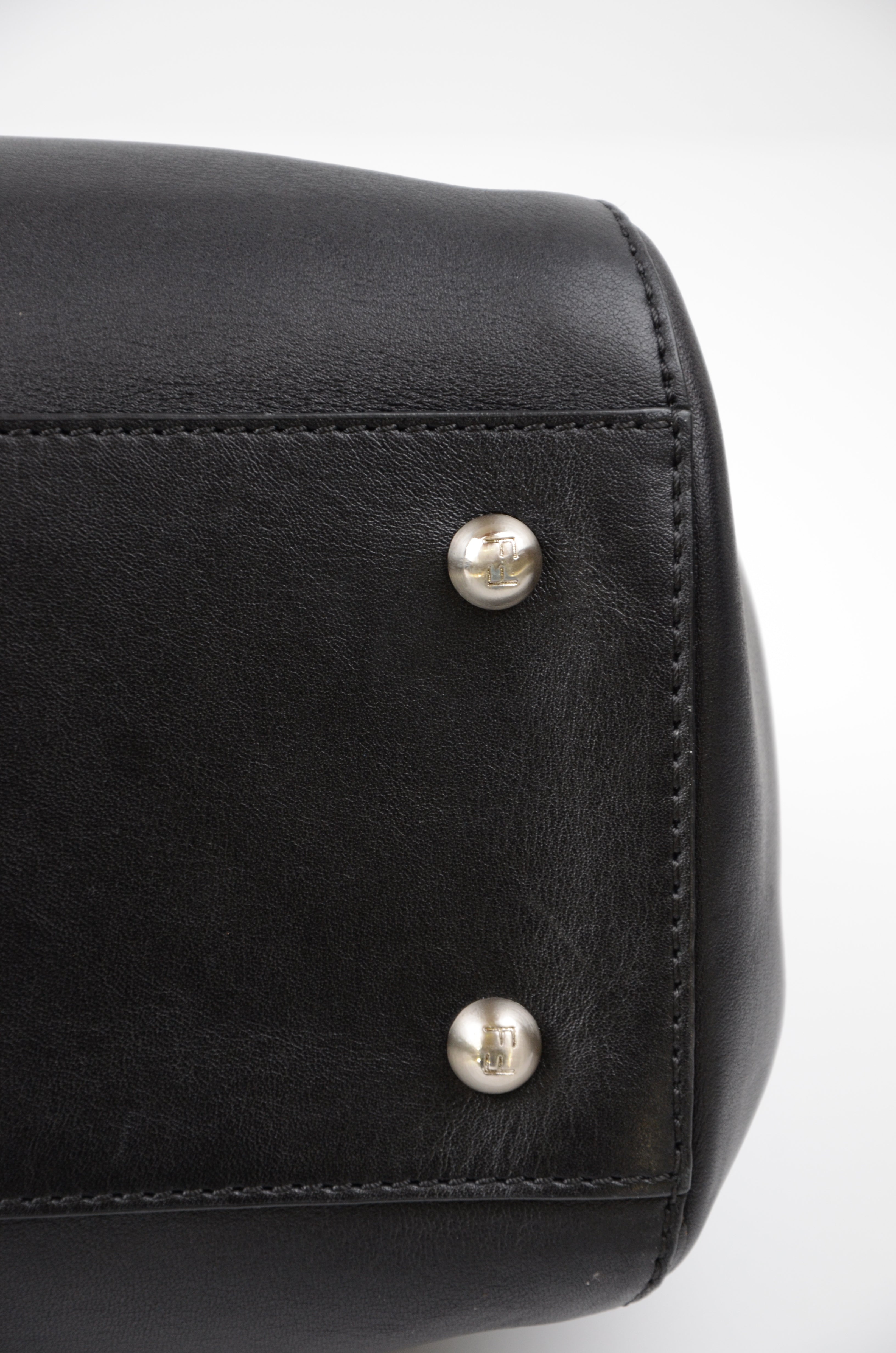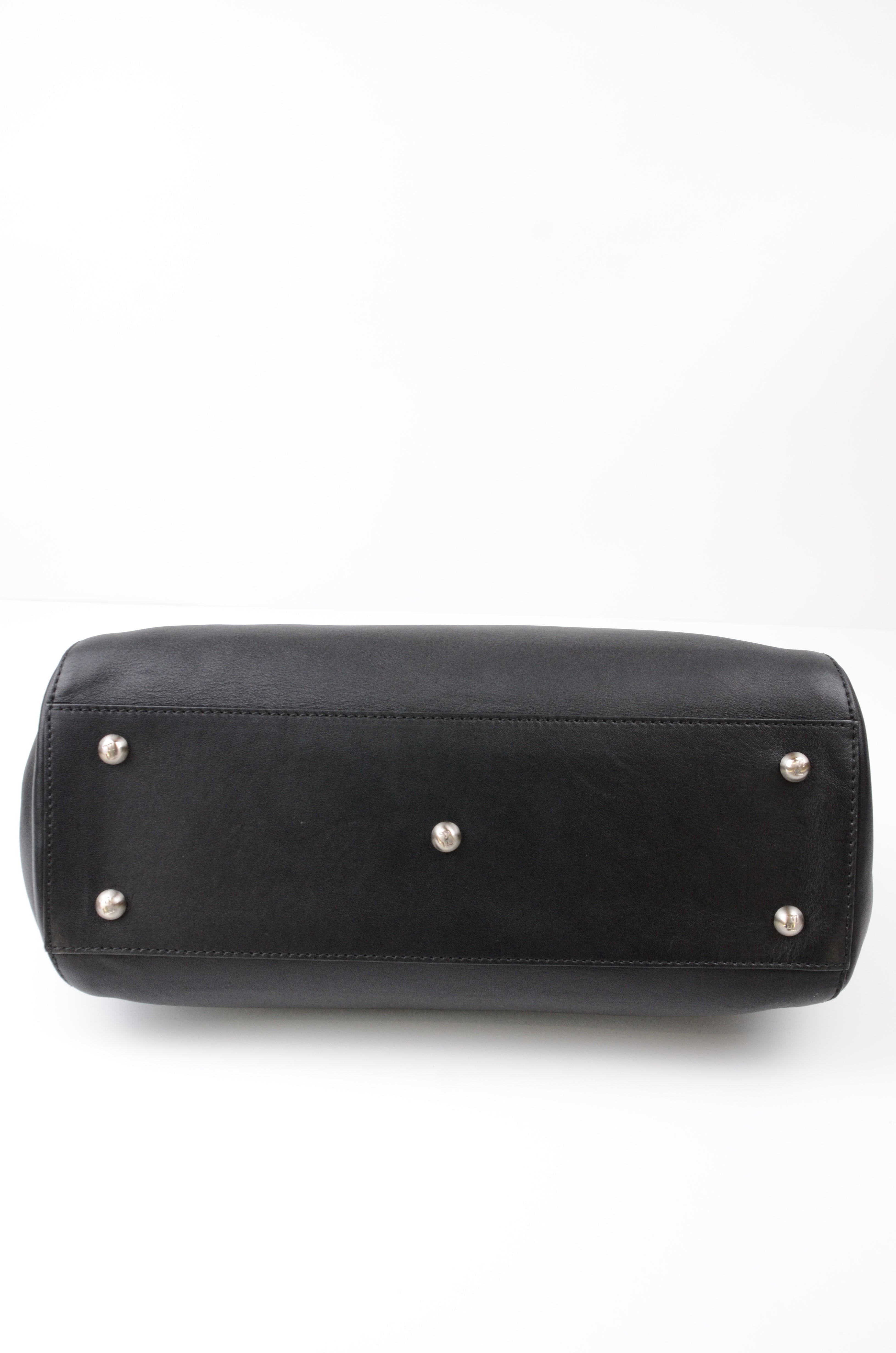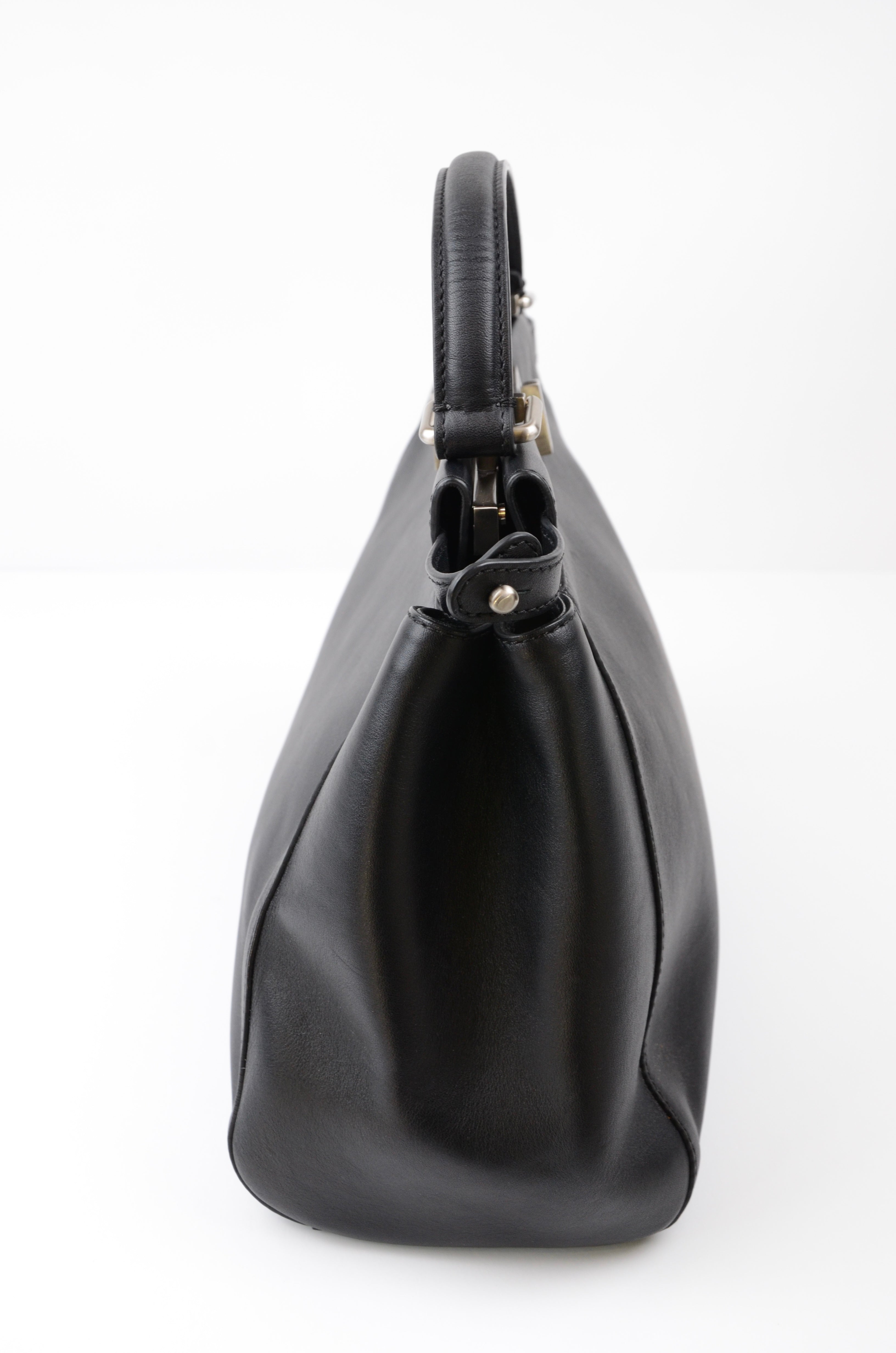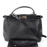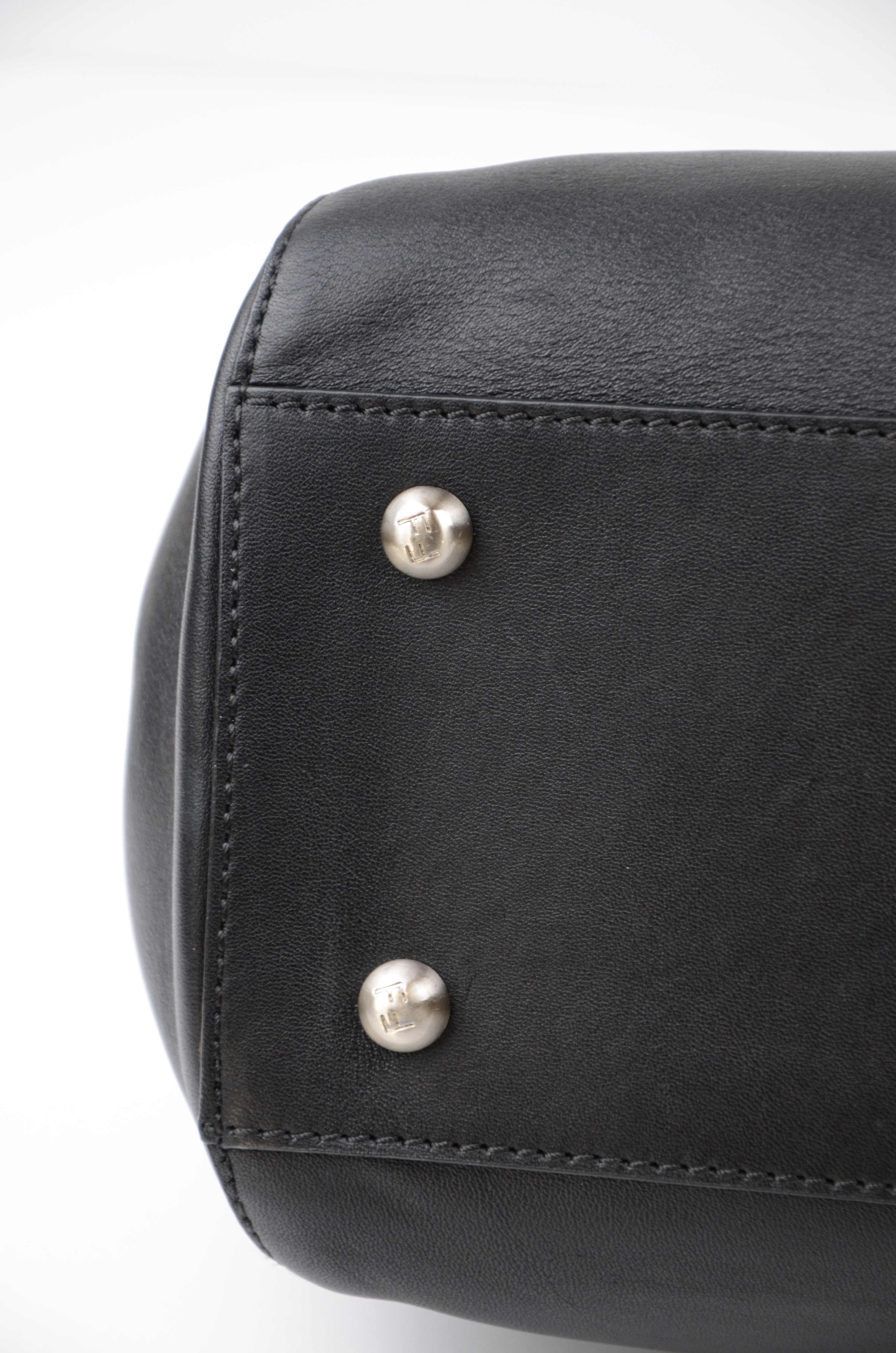 Description: step into understated luxury with this iconic Fendi Peekaboo Medium handbag, crafted in Italy. Designed in smooth black leather, this timeless piece combines refined elegance with a modern edge. The structured silhouette features the signature twist lock closure, revealing a playful interior with the distinctive yellow monster eyes motif, a subtle nod to Fendi’s creative spirit. Dual compartments with a central zip pocket ensure practicality, while the top handle and detachable shoulder strap offer versatile styling options. A true investment piece that captures the essence of Fendi’s craftsmanship and bold design heritage.