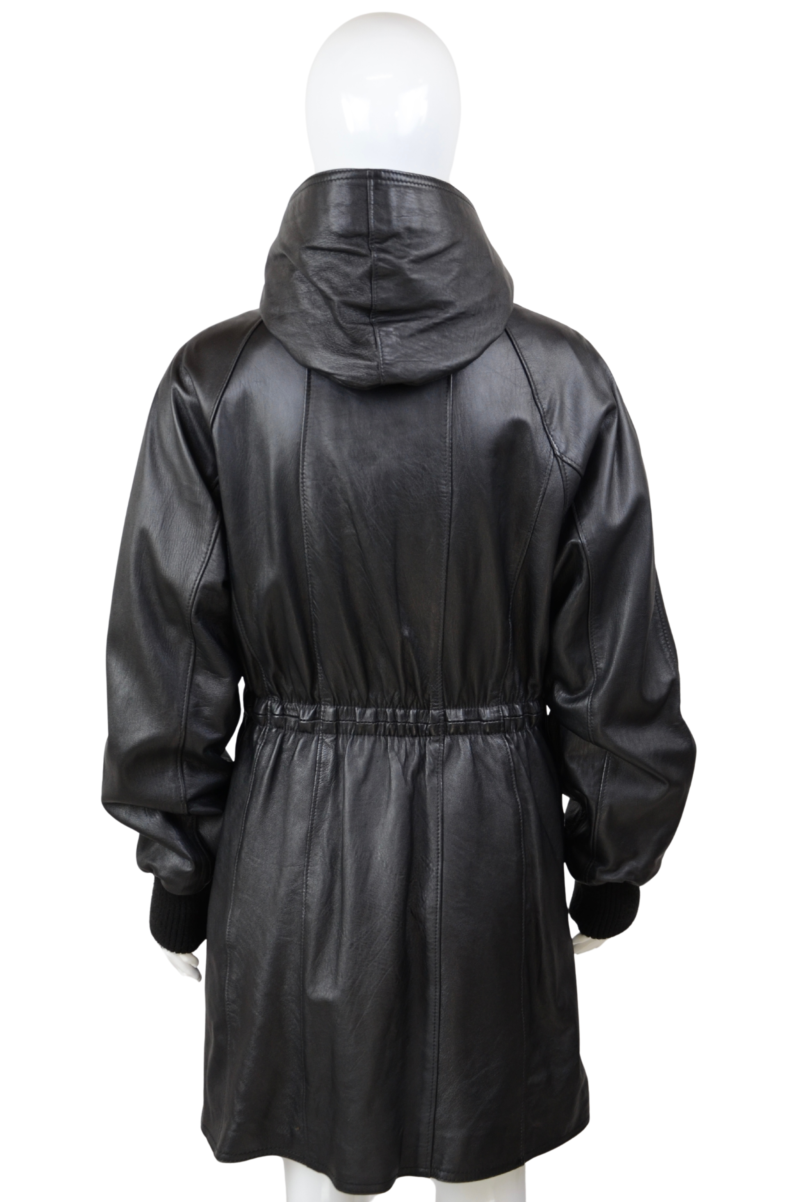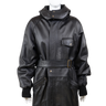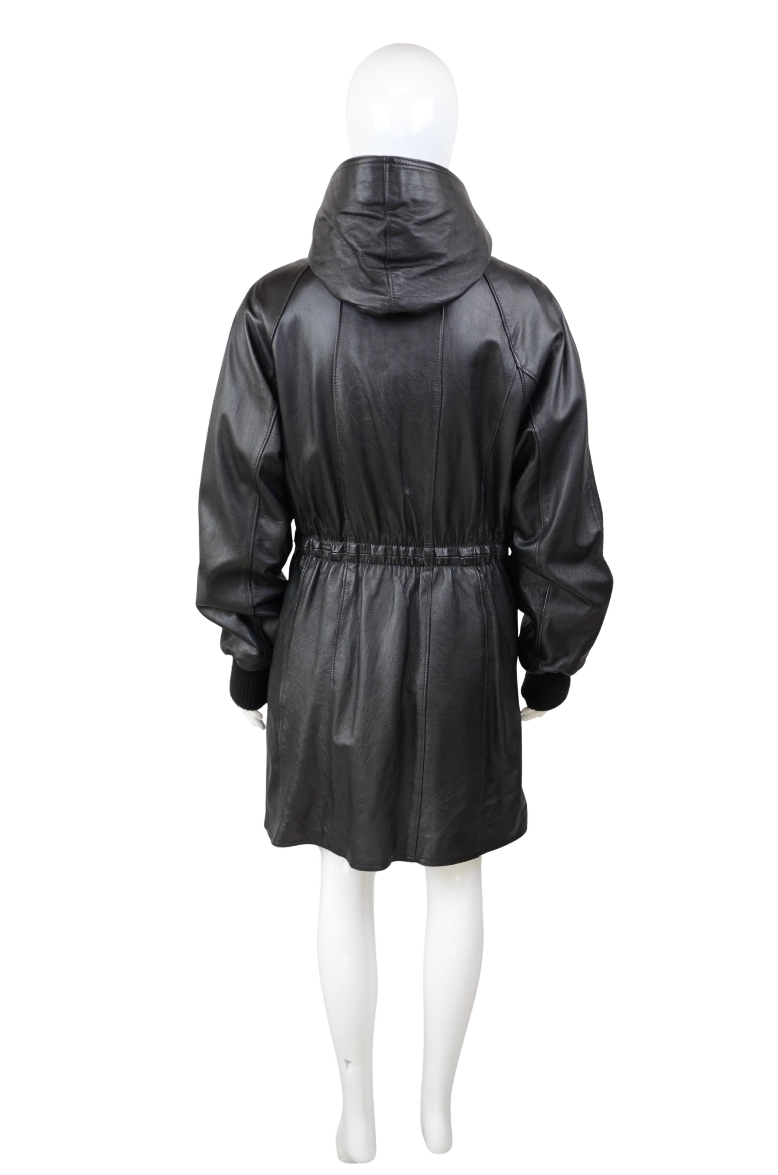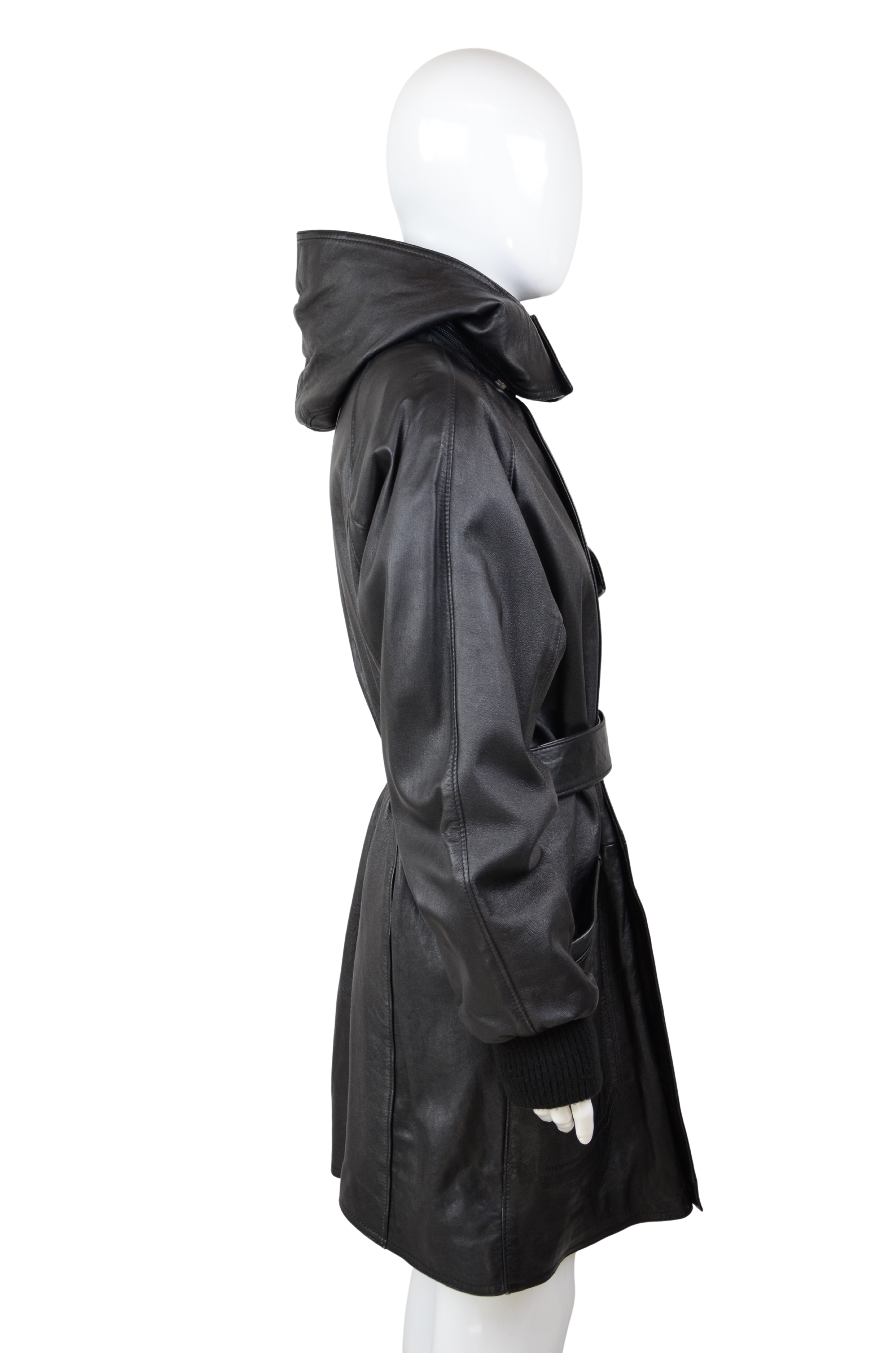 Description: make a statement with this oversized vintage leather jacket, designed with both style and practicality in mind. Crafted from genuine leather, this piece features a detachable hood, adjustable belt at the waist for a flattering fit, and multiple front pockets for a utilitarian edge. The longline silhouette and relaxed XL size give it that effortlessly cool, slightly androgynous vibe, perfect for layering over chunky knits or styling with sleek trousers. A bold outerwear piece that combines function and timeless style.