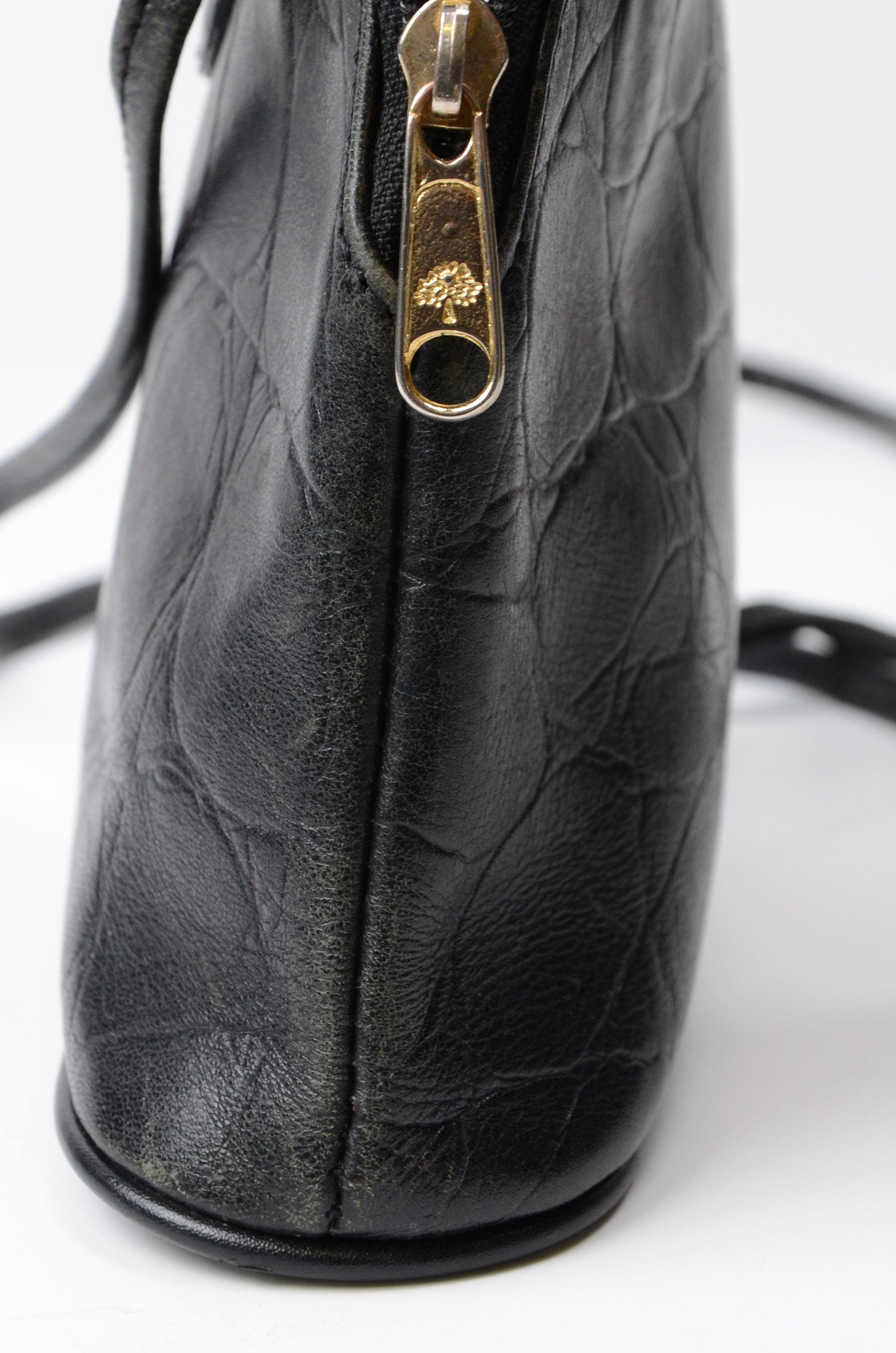 Description: elevate your collection with this authentic vintage Mulberry crossbody bag, crafted from genuine black leather. The piece features the iconic Mulberry tree logo embossed on the front, complemented by gold-tone hardware with engraved detailing. Its structured yet compact design makes it both timeless and practical, perfect for carrying your daily essentials in style. With it‘s crossbody strap and secure zip closure, this bag blends heritage craftsmanship with effortless elegance.